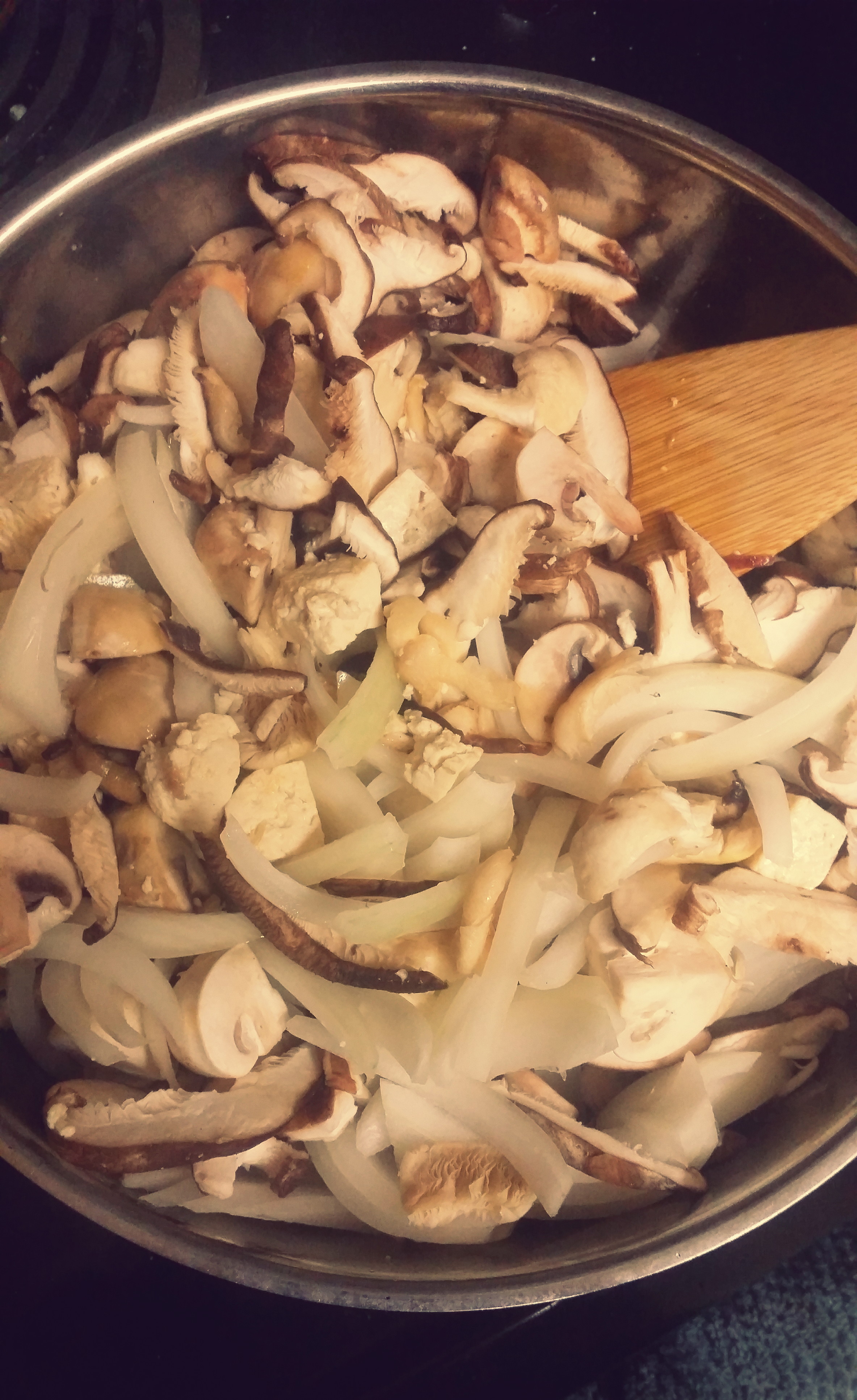 The sliced garlic scapes and the turnip greens. I didn’t use the tips of the scapes.